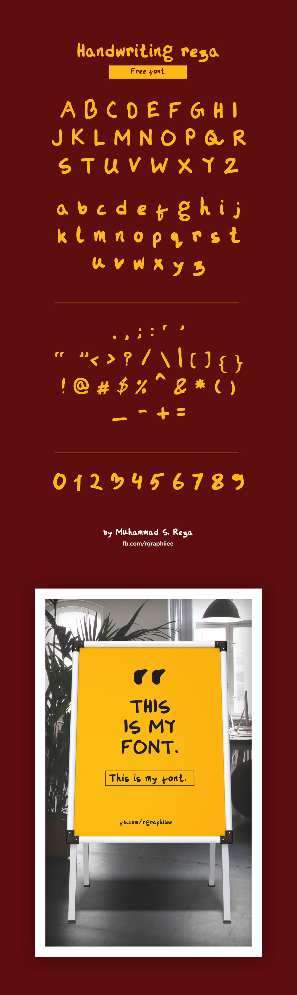 This is a handwritten font by Muhammad S. Reza. It was primarily designed with a black marker pen and then we decided to make a digital version of it available for everyone. And now you can have it here.
